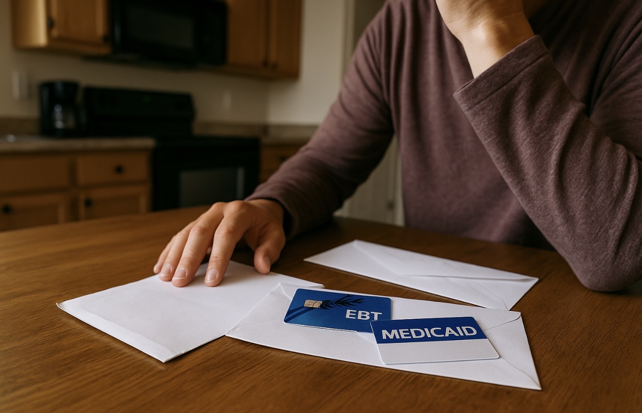 بطاقة الغذاء (فوود ستامب / SNAP) التي تعتمد عليها لشراء الطعام لأولادها، وميدكيد (Medicaid) الذي يغطي زيارات الطبيب وفحوص الأطفال. في نهاية الخطاب، موعد لمقابلة إلزامية مع موظفة القسم، وتحذير من أنه إذا تبيّن وجود معلومات غير صحيحة عن الدخل، فقد يُطلب منهم ردّ مبالغ دُفعت لهم خلال الشهور الماضية.