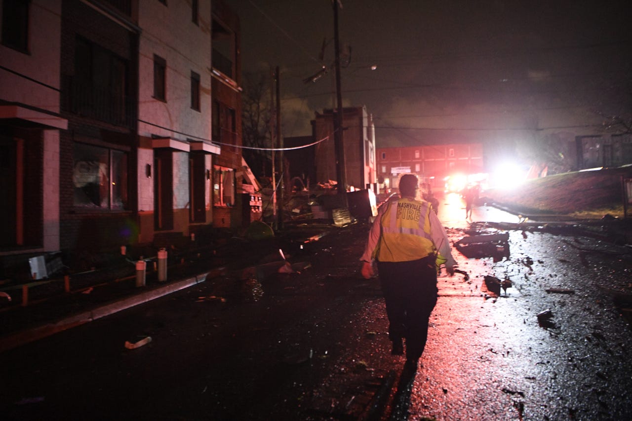 ضرب إعصار «تورنيدو» قوي، مدينة ناشفل في ولاية تينيسي، في الساعات الأولى من صباح اليوم الثلاثاء.