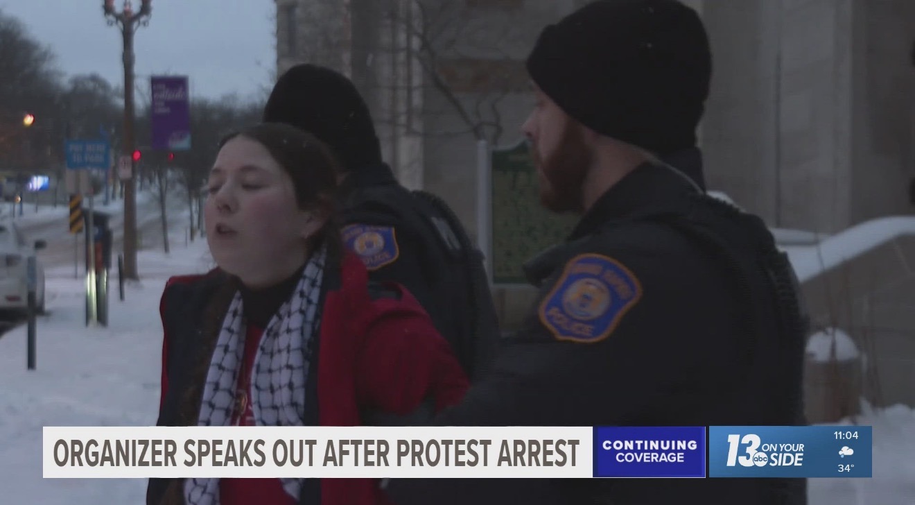 الحادثة وقعت في مدينة Grand Rapids بولاية Michigan، خلال مظاهرة مناهضة للحرب شارك فيها نحو 200 شخص. وكانت جيسيكا بليشتا قد أدلت بتصريحات لقناة WZZM المحلية، قبل أن يظهر ضابطان من الخلف ويقوما باصطحابها بعيدًا فور انتهاء المقابلة، بينما كانت تؤكد أنها لا تقاوم الاعتقال.