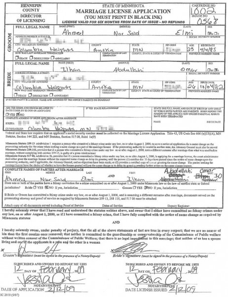 وقيل آنذاك إن النائبة المسلمة (38 عاماً) أقدمت على الزواج من شقيقها لمنحه “الأوراق القانونية” تمهيداً للحصول على “بطاقة الإقامة الخضراء في الولايات المتحدة بغية استكمال دراسته”. واكتفت عمر حينذاك بالقول إن ما يثار مجرد “أكاذيب مثيرة للاشمئزاز” وإنها لن تعلق على تفاصيل حياتها الشخصية.