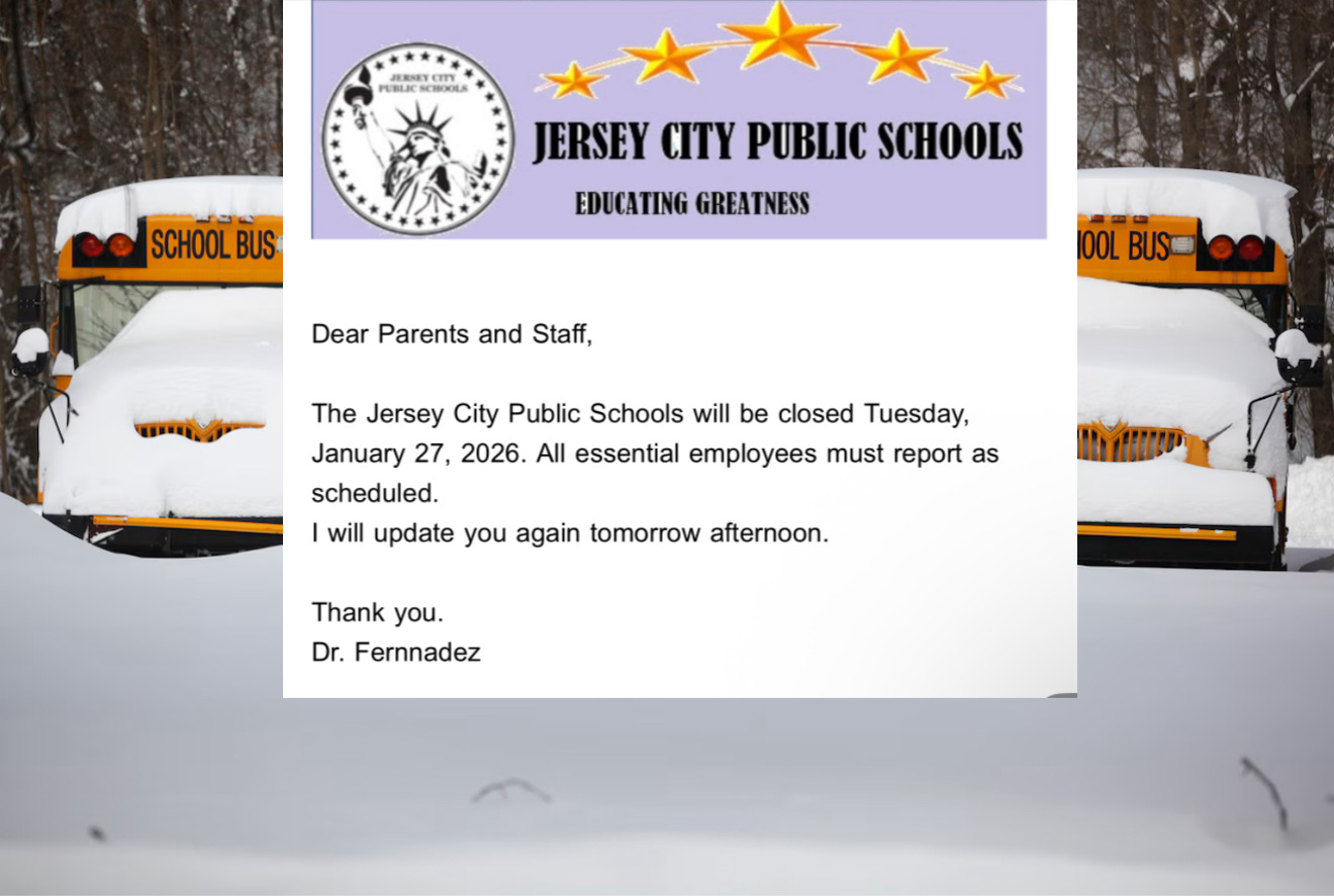 أبلغت منطقة مدارس جيرسي سيتي العامة (Jersey City Public Schools) الأهالي والعاملين بأن المدارس ستكون مغلقة يوم الثلاثاء 27 يناير 2026، مع التأكيد في الرسالة الرسمية على أن «جميع العاملين الأساسيين» مطالبون بالحضور وفق الجداول المحددة لهم.