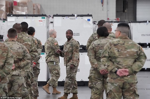 ونشرت صحيفة ” ديلى ميل” صورا توضح انتشار عناصر الحرس الوطنى وسط طقس قارس البرودة وتساقط الثلوج في بعض الولايات لبناء المستشفيات الميدانية لعلاج المصابين بفيروس كورونا.