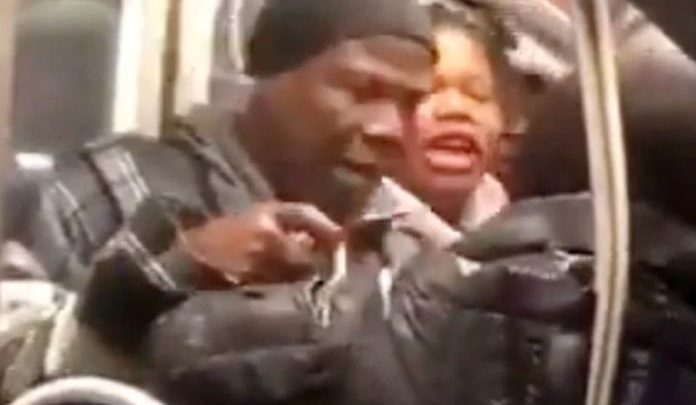 قام زوجان بسحب سكاكين على بعضهما البعض أثناء شجارهما، بينما يقف طفل أمامهما في عربة بقطار أنفاق مكتظ في بروكلين.…