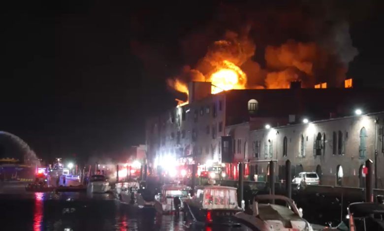 اشتعل حريق ضخم من خمسة إنذارات في مستودع كبير يضم استوديوهات فنية وشركات صغيرة في منطقة ريد هوك بحي بروكلين،…