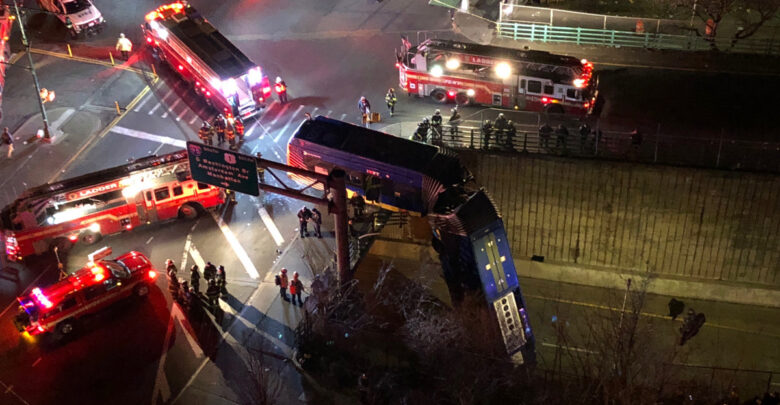 أصيب سبعة أشخاص بعد أن انحرفت حافلة في برونكس بمدينة نيويورك عن الطريق وتدل نصفها عن جسر علوي. وقال متحدث…